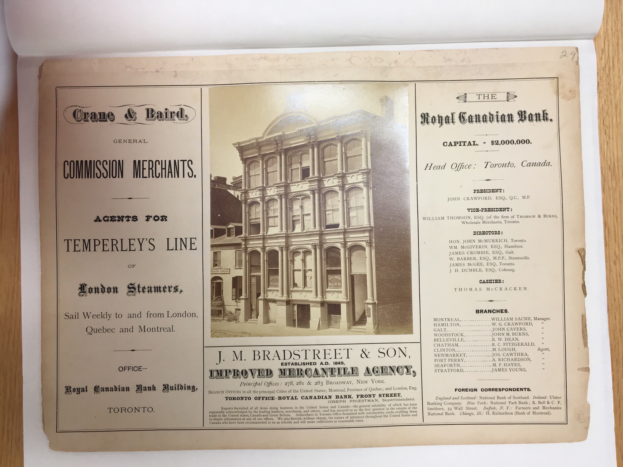 Notman & Fraser, "Royal Canadian Bank Building, Toronto," in the collection of Archives of Ontario. Nineteenth-century Canadian Photographically Illustrated Books, accessed March 11, 2026, https://canadianphotographicallyillustratedbooks.com/omeka/items/show/1293.