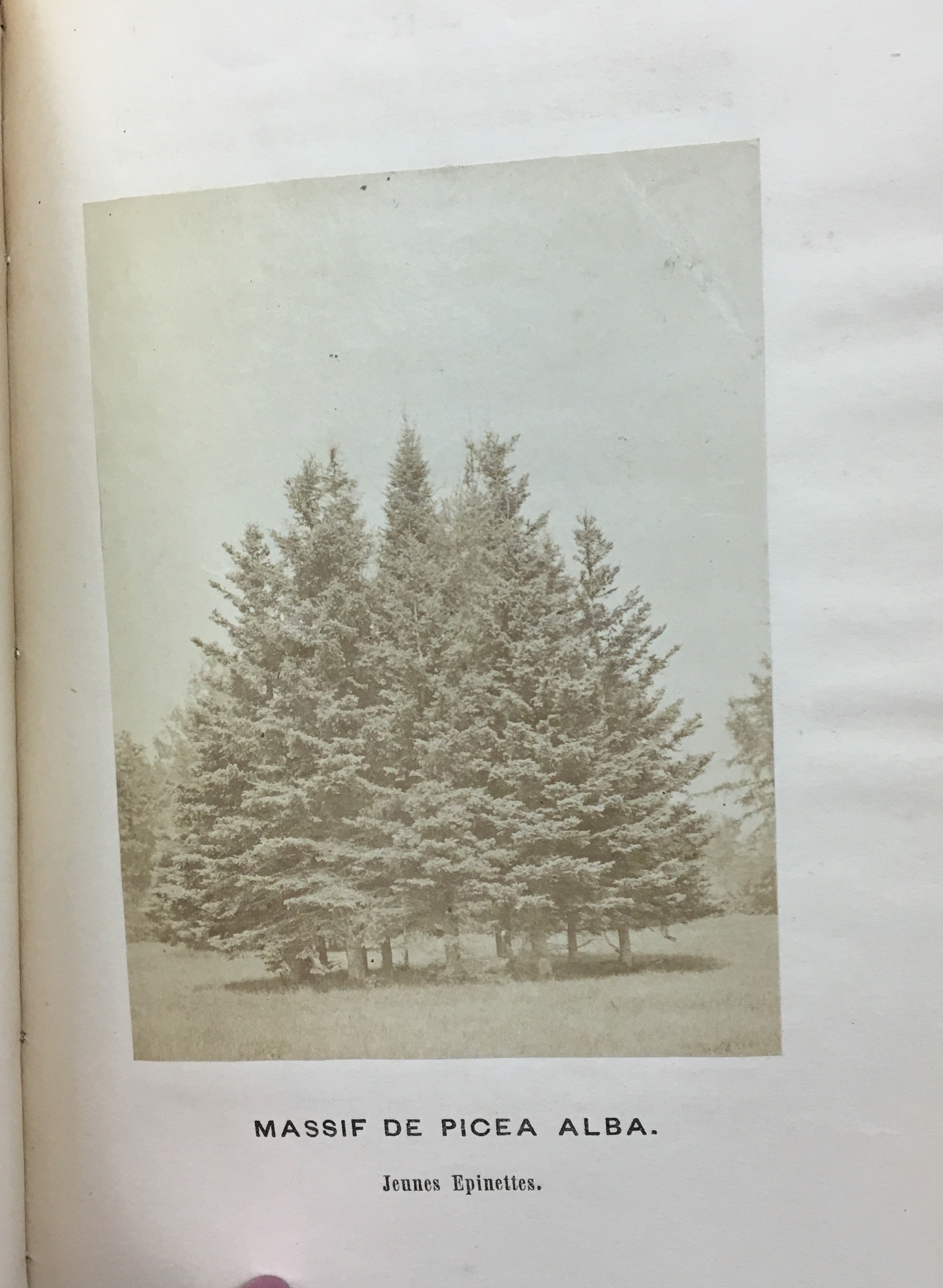 J. B. (Jules Benoît) Livernois (1830-1865), "Massif de Picea Alba. Jeunes Epinettes.," in the collection of Université de Montréal, VILLENEUVE 2022. Nineteenth-century Canadian Photographically Illustrated Books, accessed March 11, 2026, https://canadianphotographicallyillustratedbooks.com/omeka/items/show/1305.