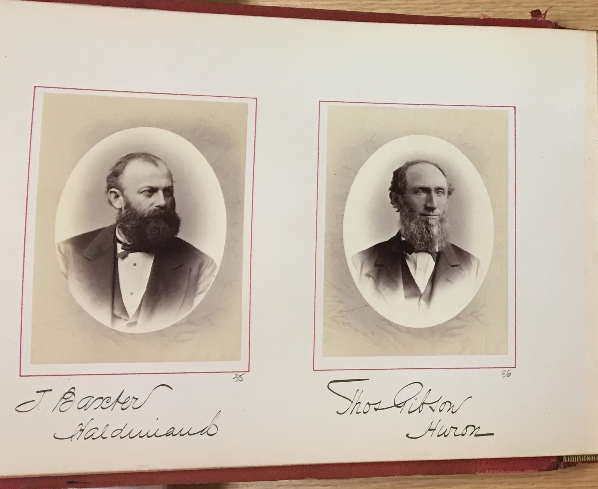 Handwritten captions under the images read "J. Baxter / Haldimand" and Thos. Gibson/ Huron."