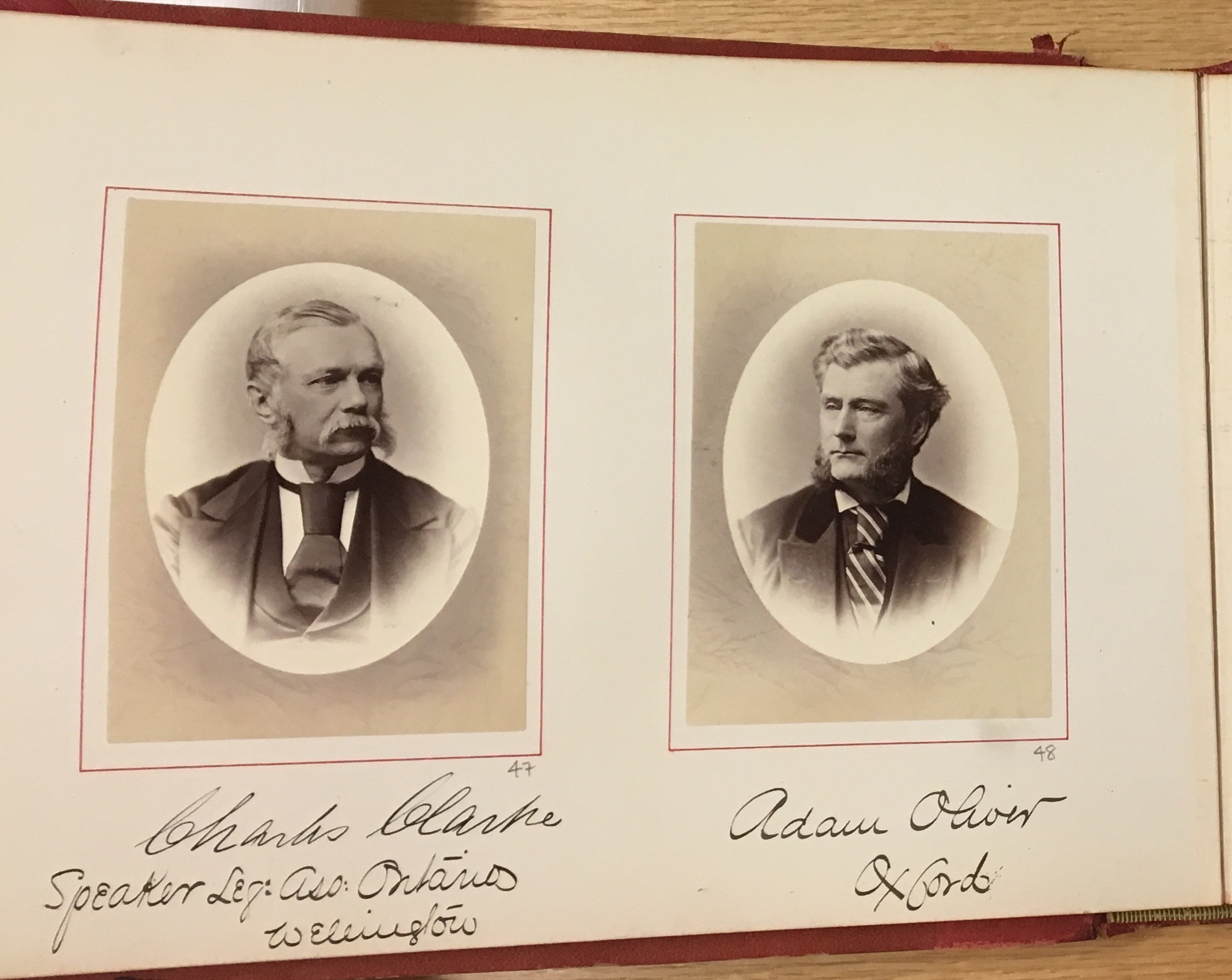 Handwritten captions under the images read "Charles Clarke/ Speaker Leg. Ass. Ontario/ Wellington" and "Adam Oliver/ Oxford."