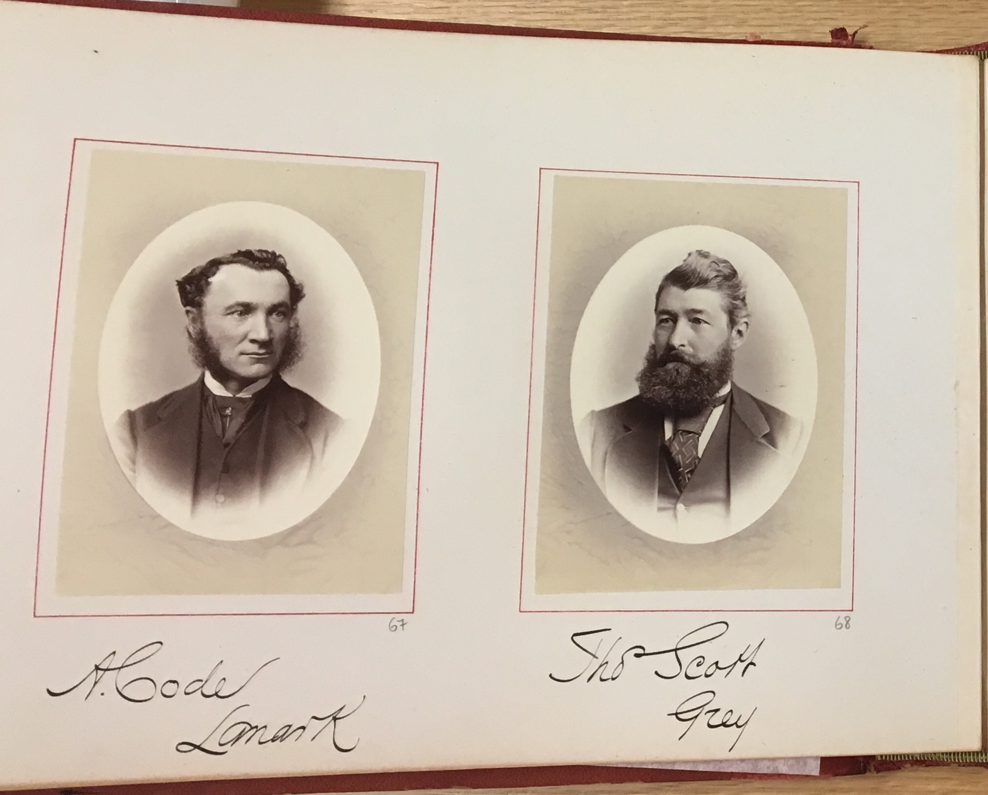 Handwritten captions under the images read "A. Code/ Lanark" and "Tho. Scott/ Grey."