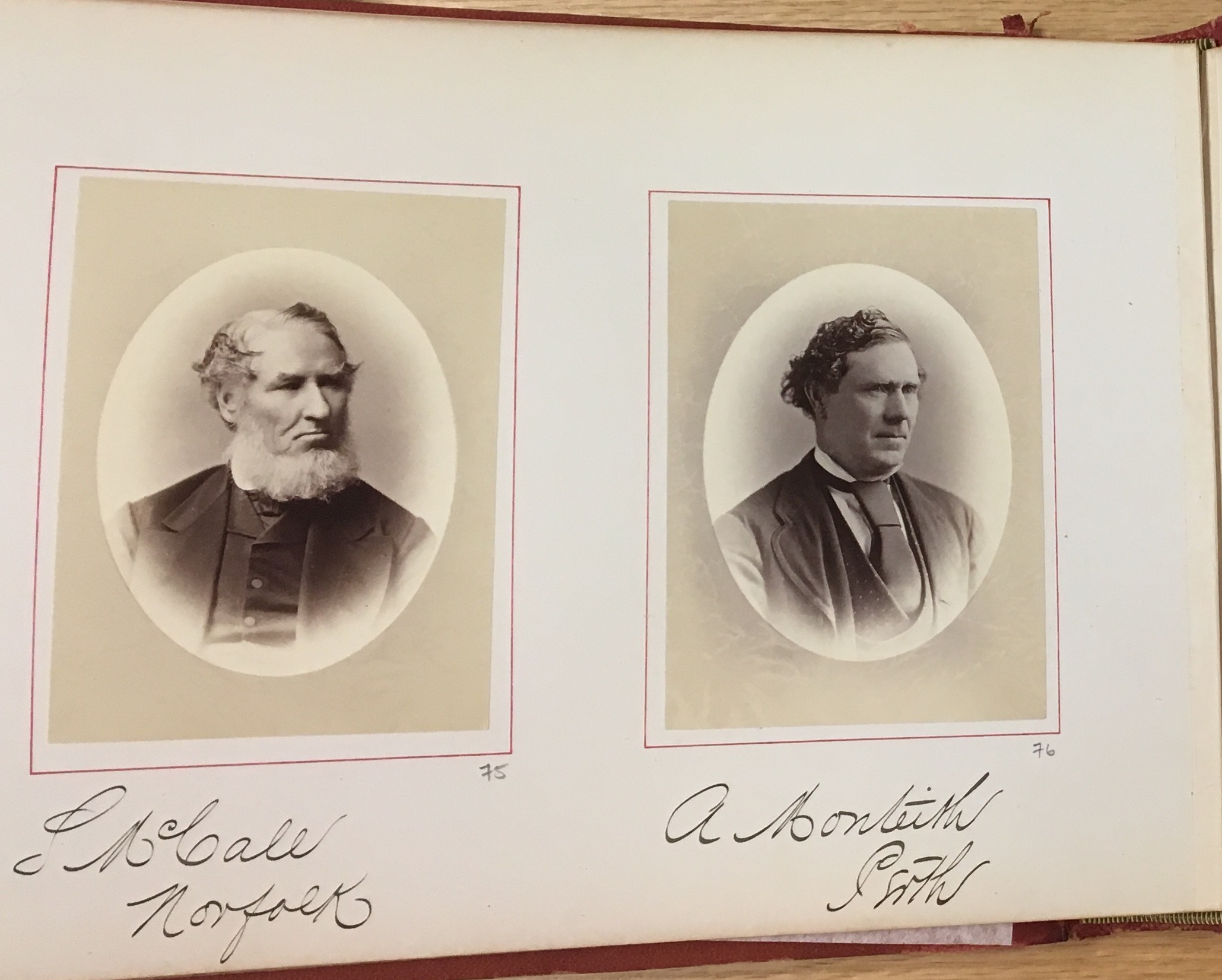 Handwritten captions under the images read "S. McCall/ Norfolk" and "A. Monteith/ Perth."